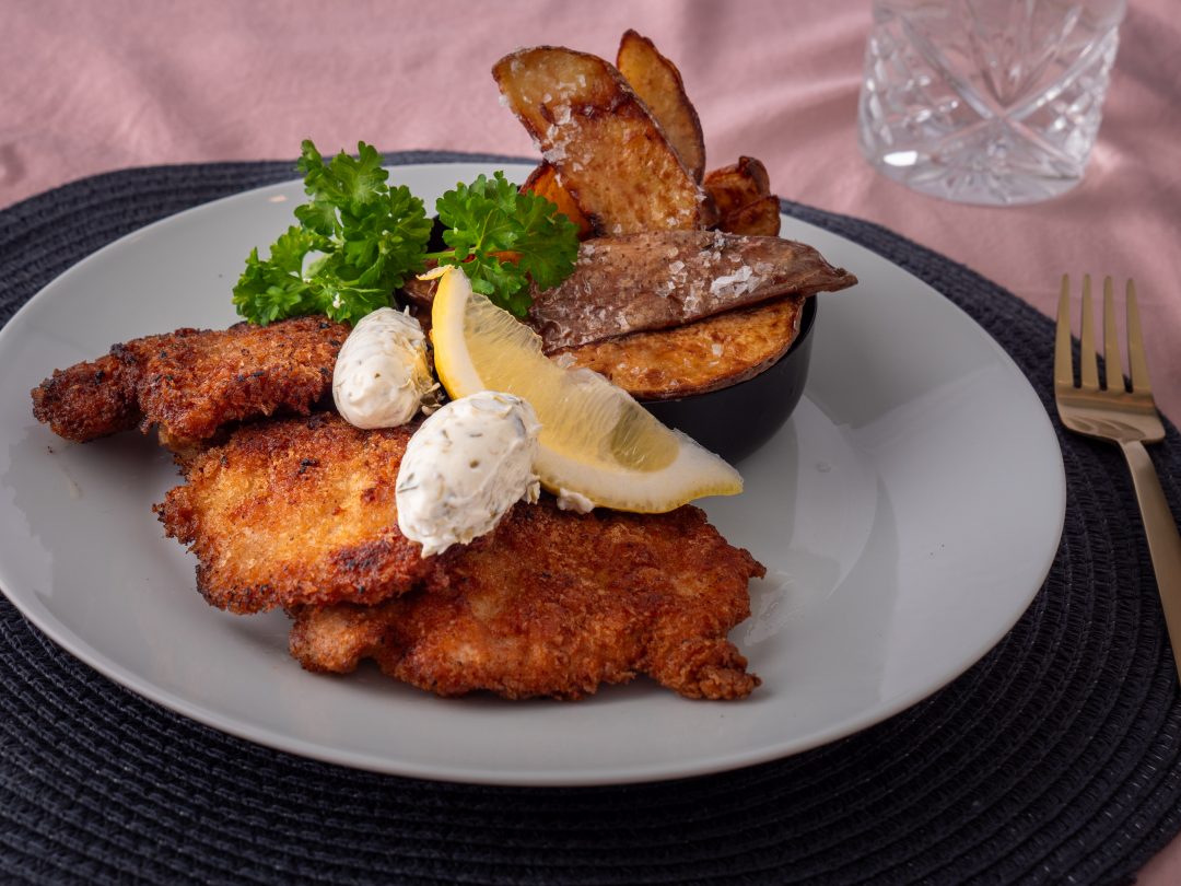 ”Schnitzel aka schnitty. Tällä legendaarisella herkulla tulee masu täyteen. Kruunaa annos itse tehdyllä kapristuorejuustolla.”